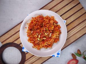 -In a bowl,grate carrot (1 & ½ Cup) with the help of the grater.