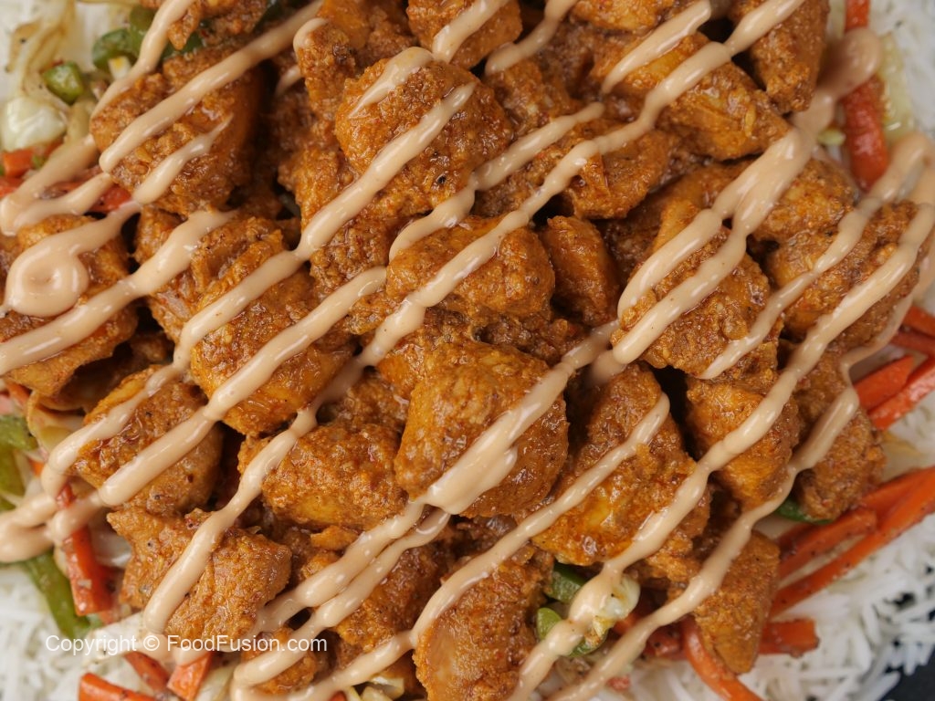 -Cut cooked chicken into pieces,dizzle sauce & serve!