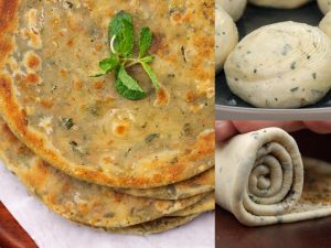 Heat griddle and place rolled paratha on it, fry from both sides with ghee.