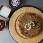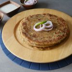 Knead dough again,take a small dough,grease hands with oil and make a ball,sprinkle dry flour,add & spread cooking oil and roll out with the help of rolling pin.