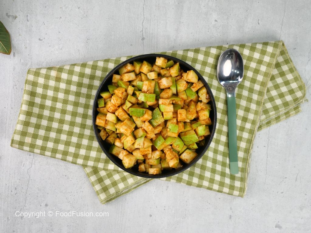-Amrood ko bite-sized cubes mein kaat len.