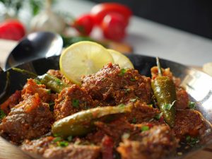 -In a serving dish, add balochi beef karahi, serve with naan, salad & raita!