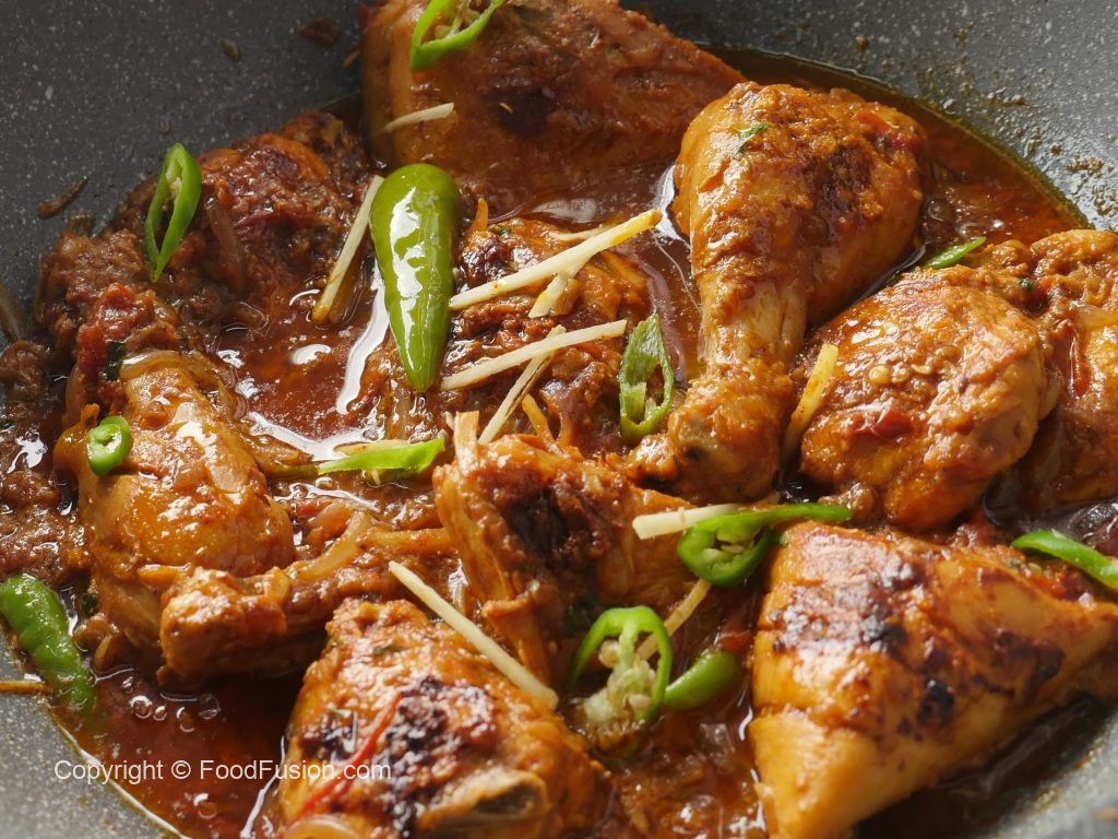 In a wok,add cooking oil,marinated chicken and cook on low flame for 12-15 minutes then cook on high flame for 2-3 minutes and turn sides in between.