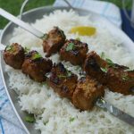 -Skewers ko (jaltay hoye koyla) bbq grill per tamam sides sa grill ker lein aur oil basting ker lein.