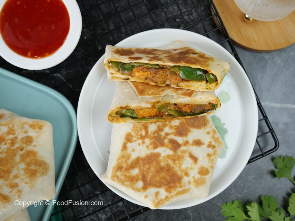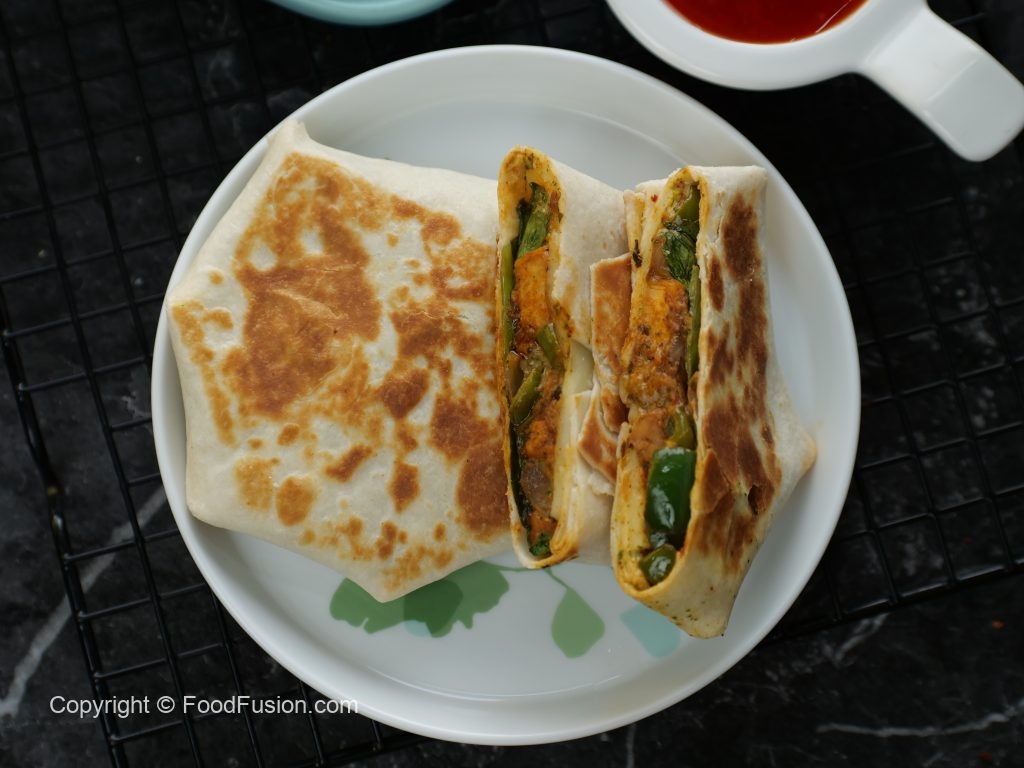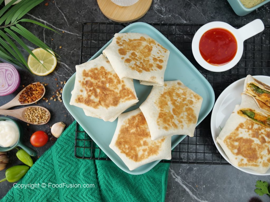 -Tawa ko cooking oil sa garam karein aur tortilla wrap rakh dein aur halki ancch per golden & crispy ho janay tak paka lein,gently press karein aur cooking oil ko brush ki madad sa laga ker flip karein aur dosri side ko golden & crispy ho janay tak paka lein (makes 8).