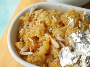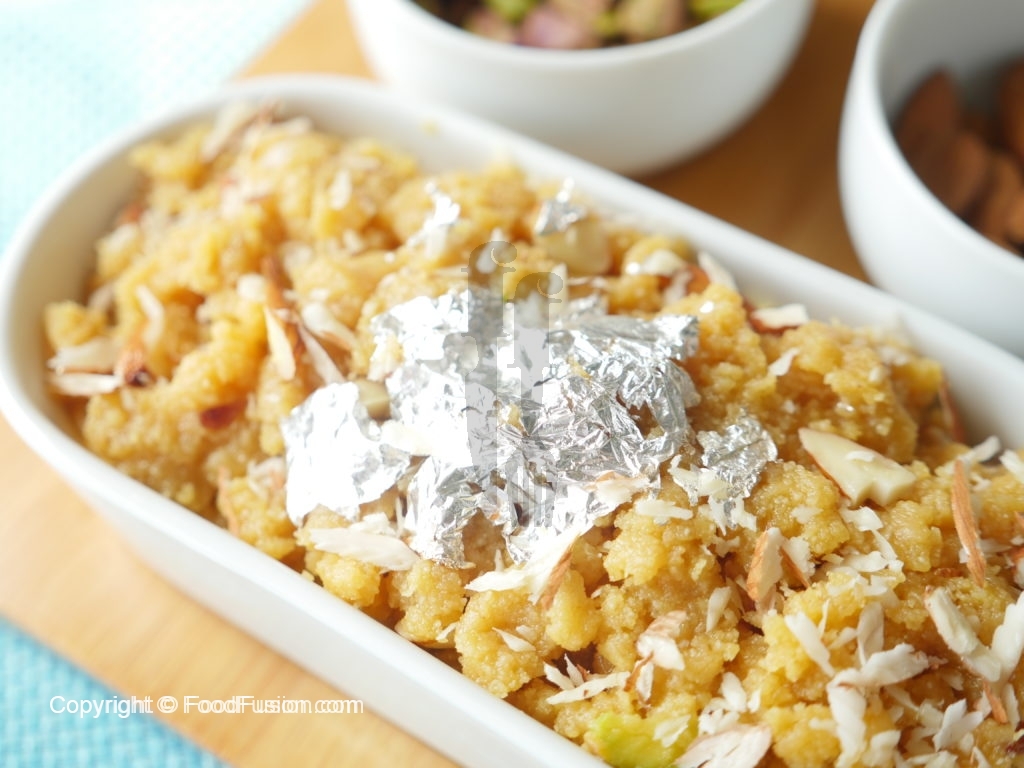 Turn off the flame,add prepared sheera and mix well.
