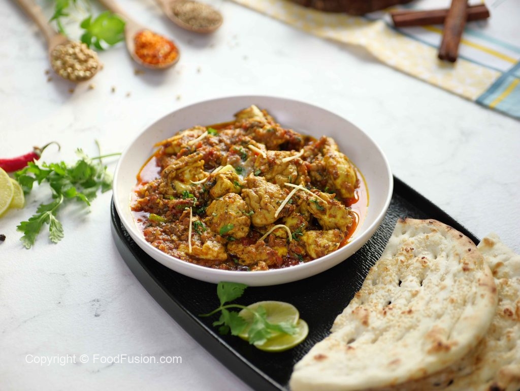 -Ek bowl mein pani,ice cubes aur bakray ka maghaz dal ker 5-6 minutes kliya chor dein phir devein ker ka outer thin membrane ko remove ker lein aur pieces mein cut ker lein.