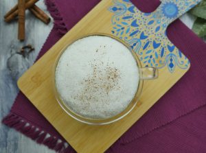 In a serving cup,add chai joshanda ¼ cup,frothed milk ¾ cup,sprinkle cinnamon powder & serve!