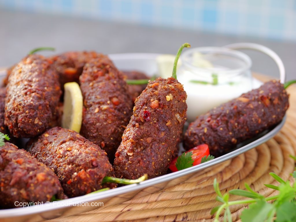 -Take small quantity of chapli kabab mixture & flatten it on your palm,place stuffed green chilli in the center & coat evenly.