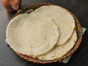 -Bowl mein chawal ka atta aur namak dal ker mix ker lein.