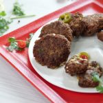 -In a bowl,add beef mince,ginger garlic paste,pink salt,paprika powder,black pepper powder,cumin powder,breadcrumbs,egg,fresh coriander & mix until well combined & marinate for 30 minutes.