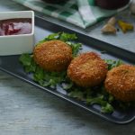 Again grease hands with oil and spread mixture on your palm,add prepared greens mixture,cover the filling and make cutlets of equal sizes (makes 10).