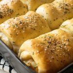 7.5 X 11” baking pan ko tayyar herbed butter sa grease ker lein,dinner rolls rakh dein aur dhak ker 20-25 minutes kliya proof ker lein.