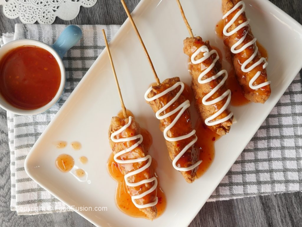 Tayyar sweet chili sauce aur mayonnaise ka saath serve karein.