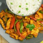 Chicken Jalfrezi tayyar hai, chawal ka saath serve karein.