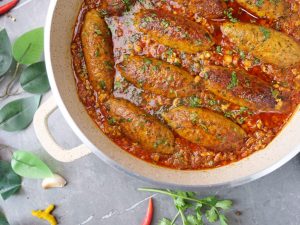 -Add prepared seekh kabab,fresh coriander,cover & simmer on low flame for 4-5 minutes & serve!