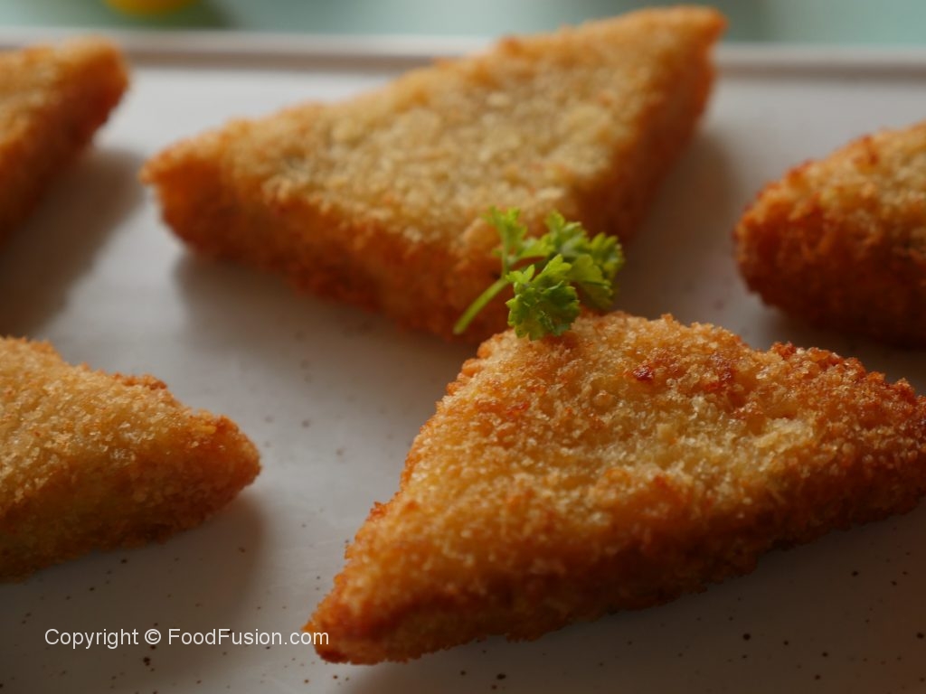 Now coat in all-purpose flour then dip into beaten eggs and coat in breadcrumbs.