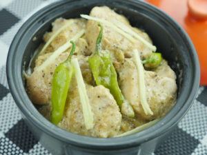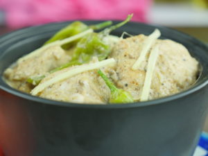 White chicken karahi is ready to serve with roti chapati or naan.