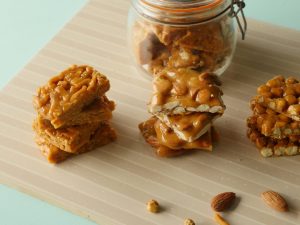 Gur syrup mein roasted bhunay chanay ker ache tarhan mix karein.