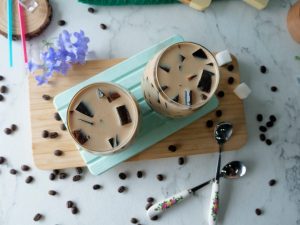 Serving glass mein tayyar coffee jelly aur tayyar cold coffee dal ker stir ker lein & serve karein!