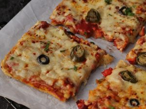 Cheddar cheese,mozzarella cheese,black olives,pickled jalapenos,dried oregano aur lal mirch crushed dal dein (makes 2 pizzas).
