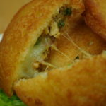 Bowl mein chicken,matar,aloo,dhania,lal mirch,kali mirch,namak,mozzarella cheese aur Olper’s cream dal ker ache tarhan mix ker lein.