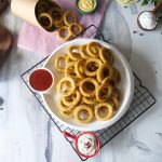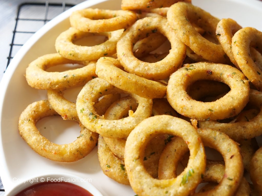 -Frying pan mein cooking oil garam karein aur potato rings ko darmiyani ancch per golden ho janay tak fry ker lein.