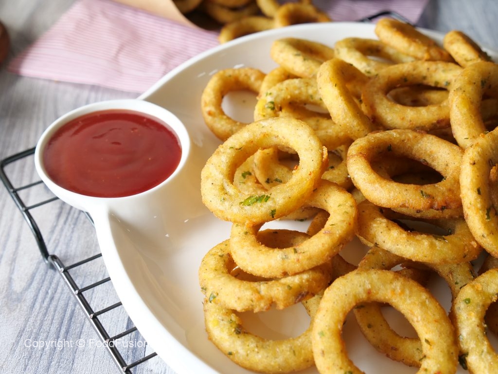-In a frying pan,heat cooking oil and fry potato rings on medium flame until golden.