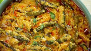 -Bhindi dal ker ache tarhan mix karein aur darmiyani ancch per light golden & crispy ho janay tak fry ker lein & side per rakh dein.