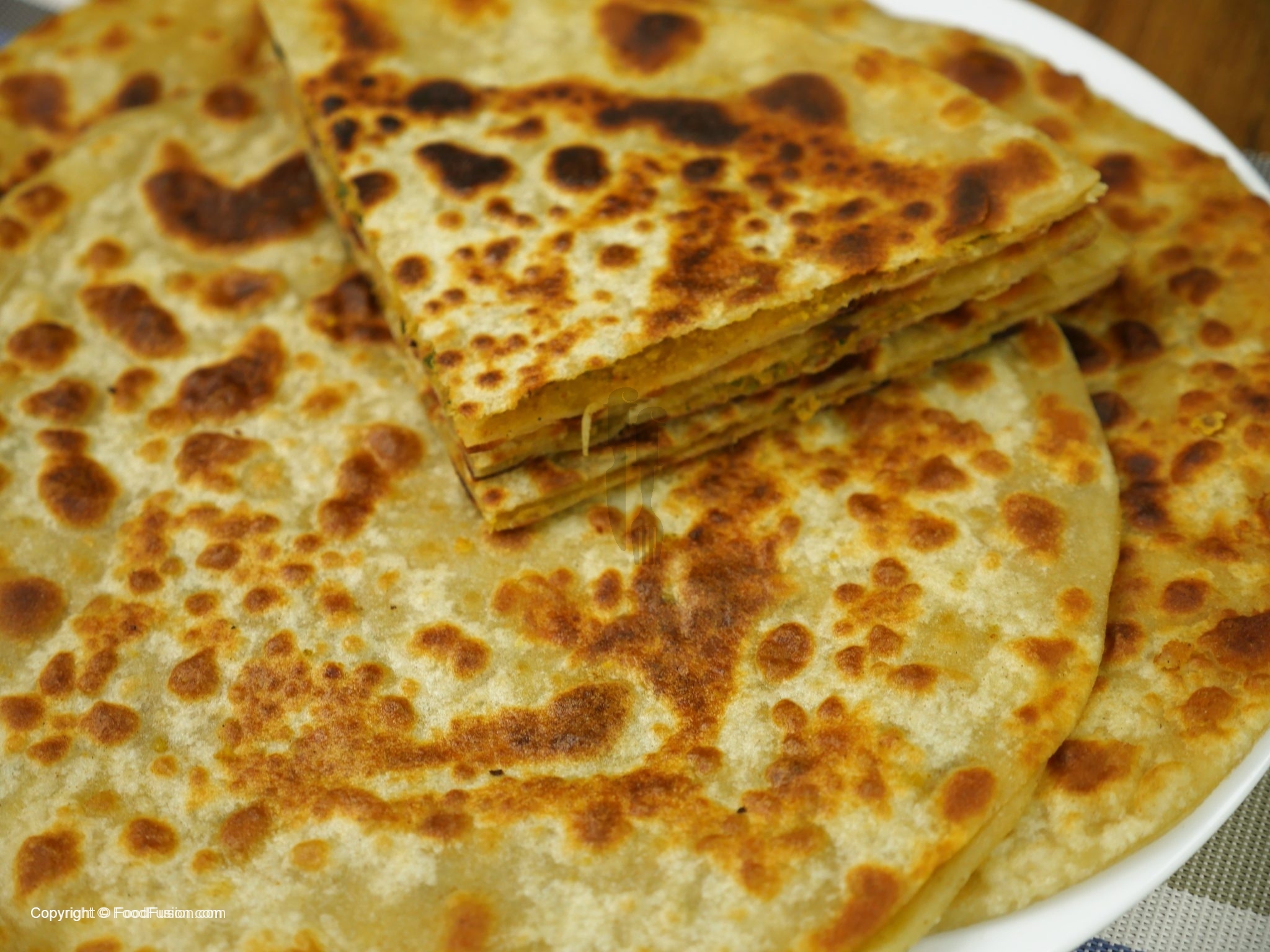 Tawa ko garam ker ka paratha ko ghee mein dono sides sa fry ker lein.
