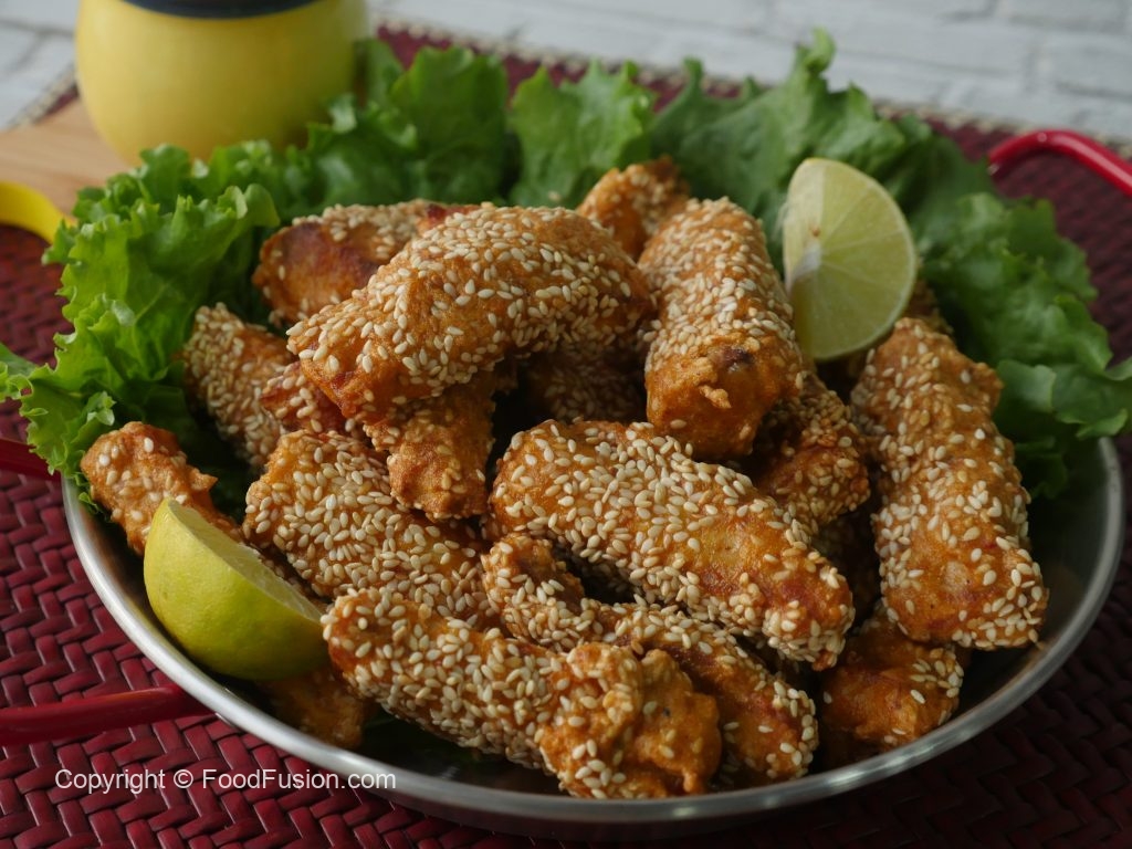 Fish pieces per safed til sprinkle ker lein.