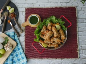 Add egg,all-purpose flour,cornflour,chicken powder,sesame seeds,vinegar & mix well.