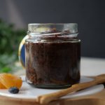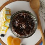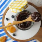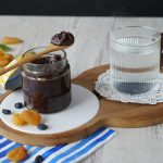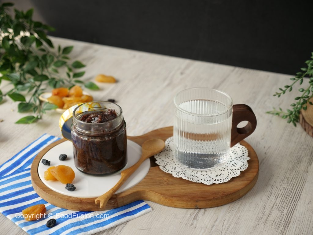 -In a bowl,add dried apricots,black raisins,hot water,cover & soak for 25-30 minutes then strain & blend well with the help of blender.