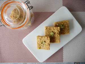 Cut into desired shape and add pistachios.
