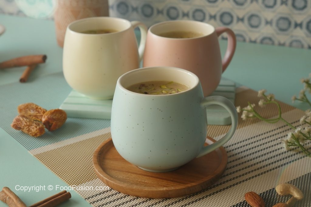 Add pistachios,dry dates,cashew nuts,almonds,green cardamom,cinnamon sticks,nutmeg & roast until fragrant (3-4 minutes) and let it cool.