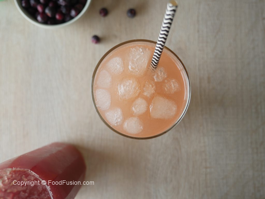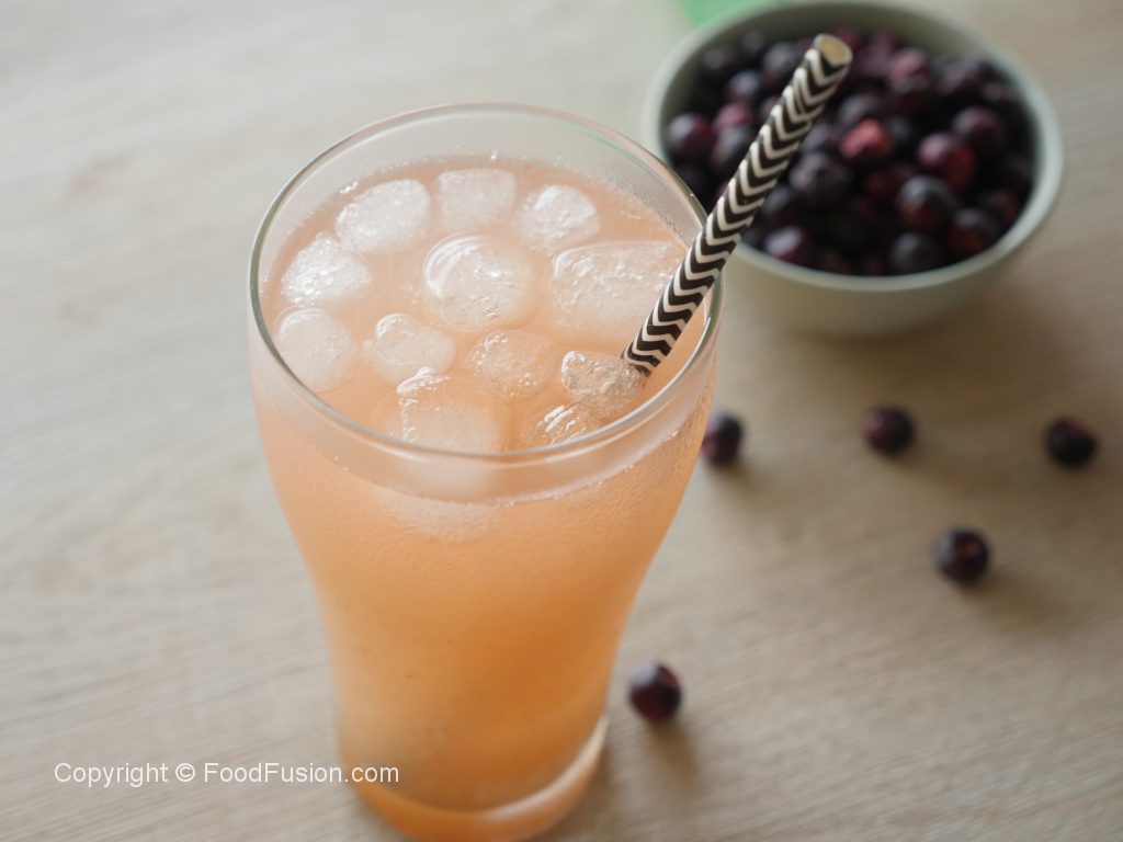 In serving glass,add grewia syrup,ice cubes and water.