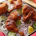 Karahi mein cooking oil aur marinated chicken pieces dal ker dhak dein aur halki ancch per steam cook ker lein (8-10 minutes each side) phir darmiyani ancch per pani sukh janay tak paka lein (6-8 minutes).
