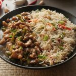 -Fried rice ko Chicken Mongolian ka saath serve karein.