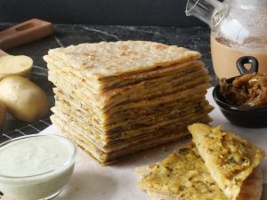 -Heat griddle,place rolled paratha & cook from both sides with ghee until golden & crispy.