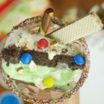Sprinkle nuts,bunties,chocolate chips,rainbow sprinkles or any of your choice and serve.