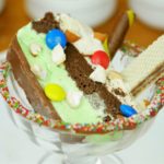 For glass decoration,take ice cream bowl, dip into melted chocolate and coat with rainbow sprinkles.