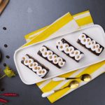 -Wrap one side of 3.5 x 8.5-inch mold with cling film & place it on a tray.