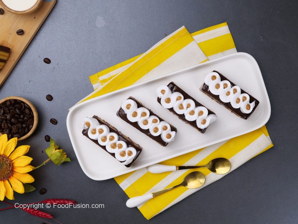 -Dip chocolate sooper biscuits in prepared coffee mixture & layer them in the base of the mold.