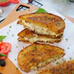 -Ek bread slice per cheddar cheese slices,mozzarella cheese,tayyar beef filling aur mozzarella cheese dal ker dosra bread slice rakh dein.