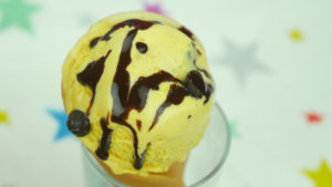 Now dip prepared cone into melted chocolate,multi sprinkles,add ice cream scoop and garnish with multi sprinkles,bunties and chocolate sauce.