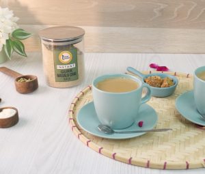 In blender,add milk powder,cloves,green cardamom,cinnamon stick,star anise,ginger powder, jaggery,tea leaves & grind well.