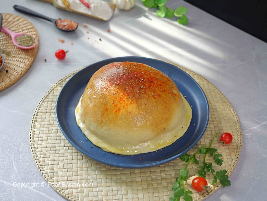 -Take 90g dough, make a ball, dust some dry flour & roll out with the help of a rolling pin.