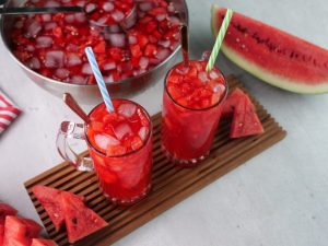 -Bowl mein ice cubes aur tarbooz (cut in small cubes) dal ker ache tarhan mix karein.