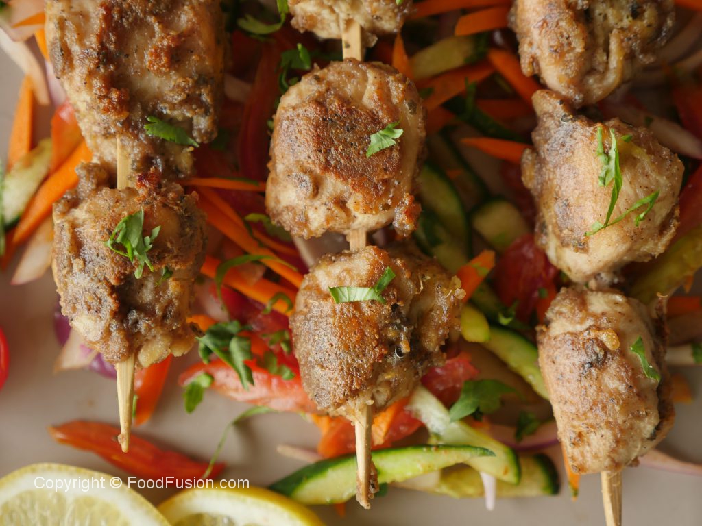 Kasturi chicken skewers ko salad ka saath serve karein.