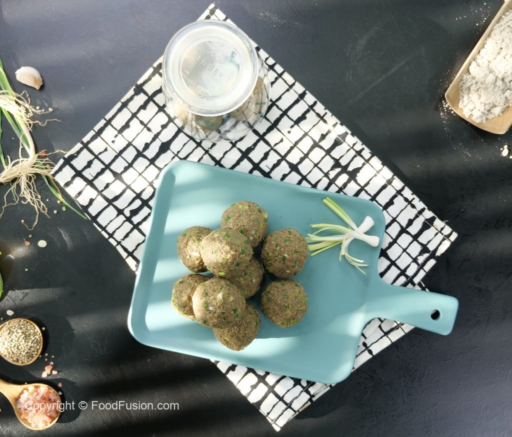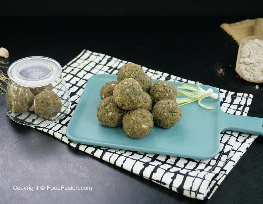 Take a small quantity of mixture (50g) & make ladoo of equal sizes (makes 12).